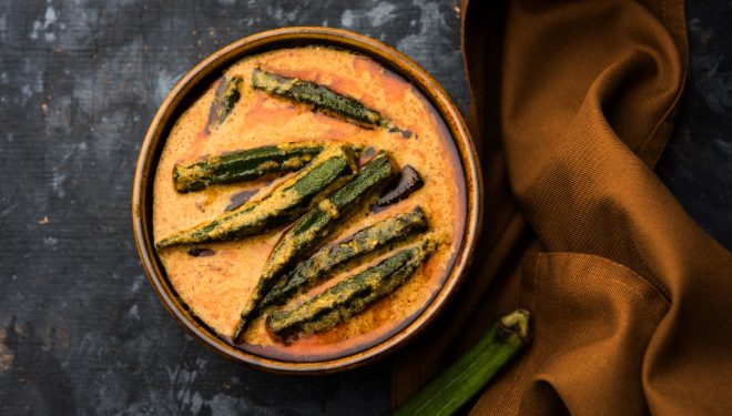 Bhindi masala is a flavorful vegetarian dish from North Indian cuisine, made with tender okra (bhindi), whole and ground spices, herbs, onions, and tomatoes. It goes well with roti, naan or missi roti. Here’s how to make it: