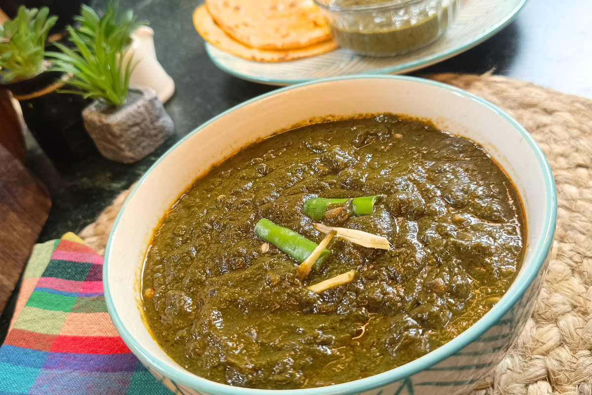 - Palak (Spinach): Balances the bitterness of mustard leaves and gives a creamy texture.